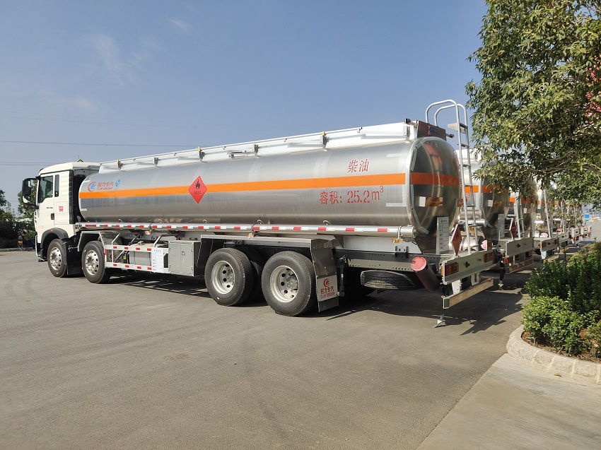 重汽豪沃铝合金运油车,重汽豪沃T5G底盘,德国曼发动机340马力,6T双前桥(德国曼桥),11T双后桥(德国曼桥),豪沃10档变速箱,气囊减震,带前盘、限速、ABS,行车记录仪,空调,295真空胎。公告容积:25.2立方,单仓,带泵(泵进泵出),罐检出柴油介质,带一套欧标系统(两个欧式罐口、紧急切断阀、防溢漏报警装置、海底阀、下装口、油气回收,海底阀自动开关)。罐顶带升降护栏,其他厂家标配。供方提供上户所有手续(上户发票,合格证,罐检报告)。